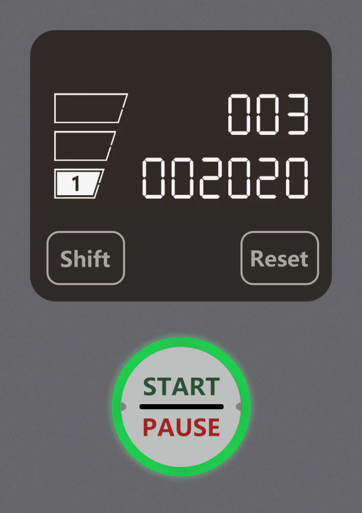 Pokud kontrolka tlačítka START svítí nepřetržitě zelenou barvou, znamená to, že strojek funguje normálně a je připravený k plnění cigaret.
